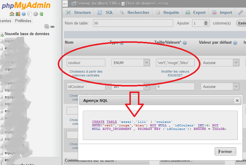 4. Créer une table "joueur" avec les champs suivants: numéro char(2), prénom char(20), nom char(20).