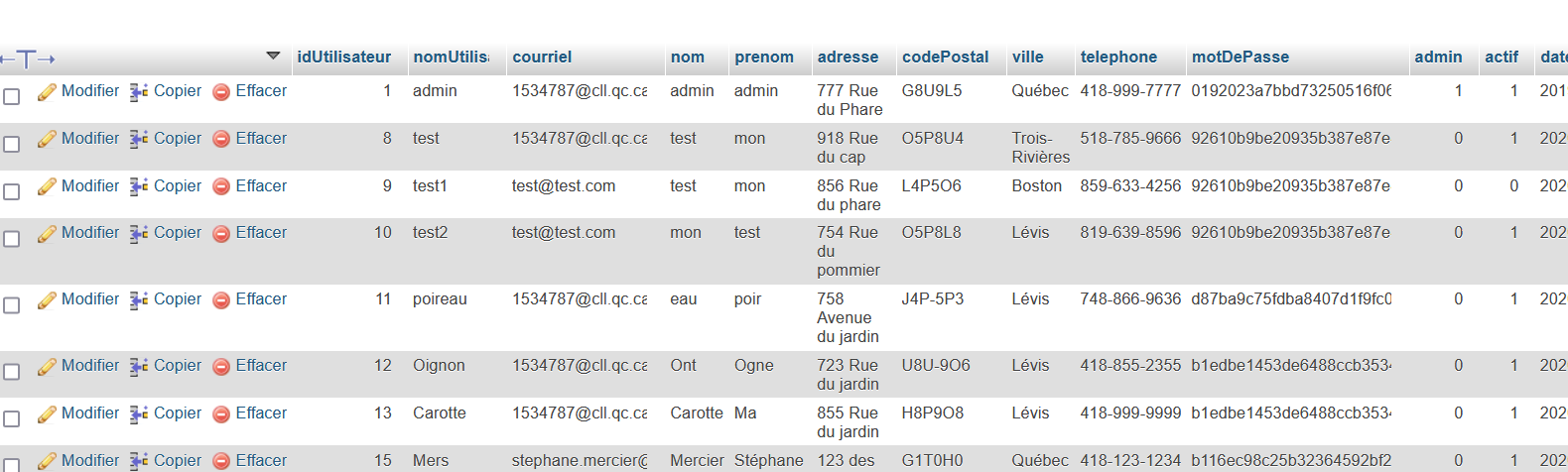 Vérifier si l’usager que vous avez ajouté est présent dans la table.